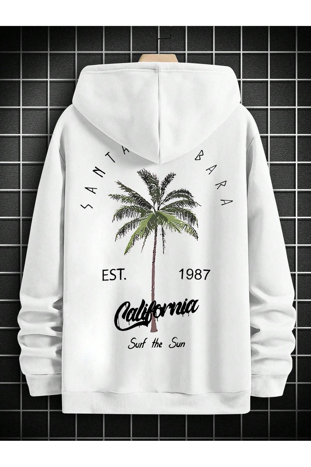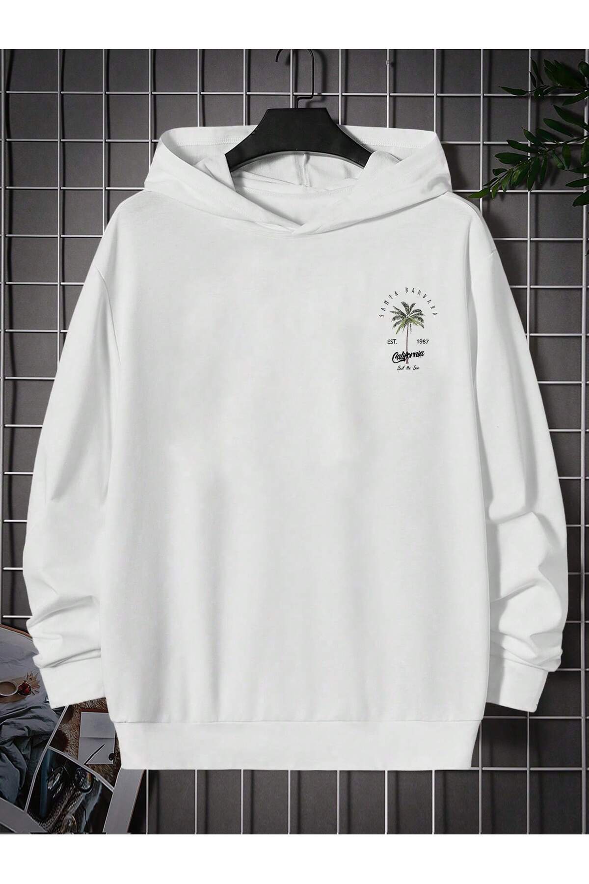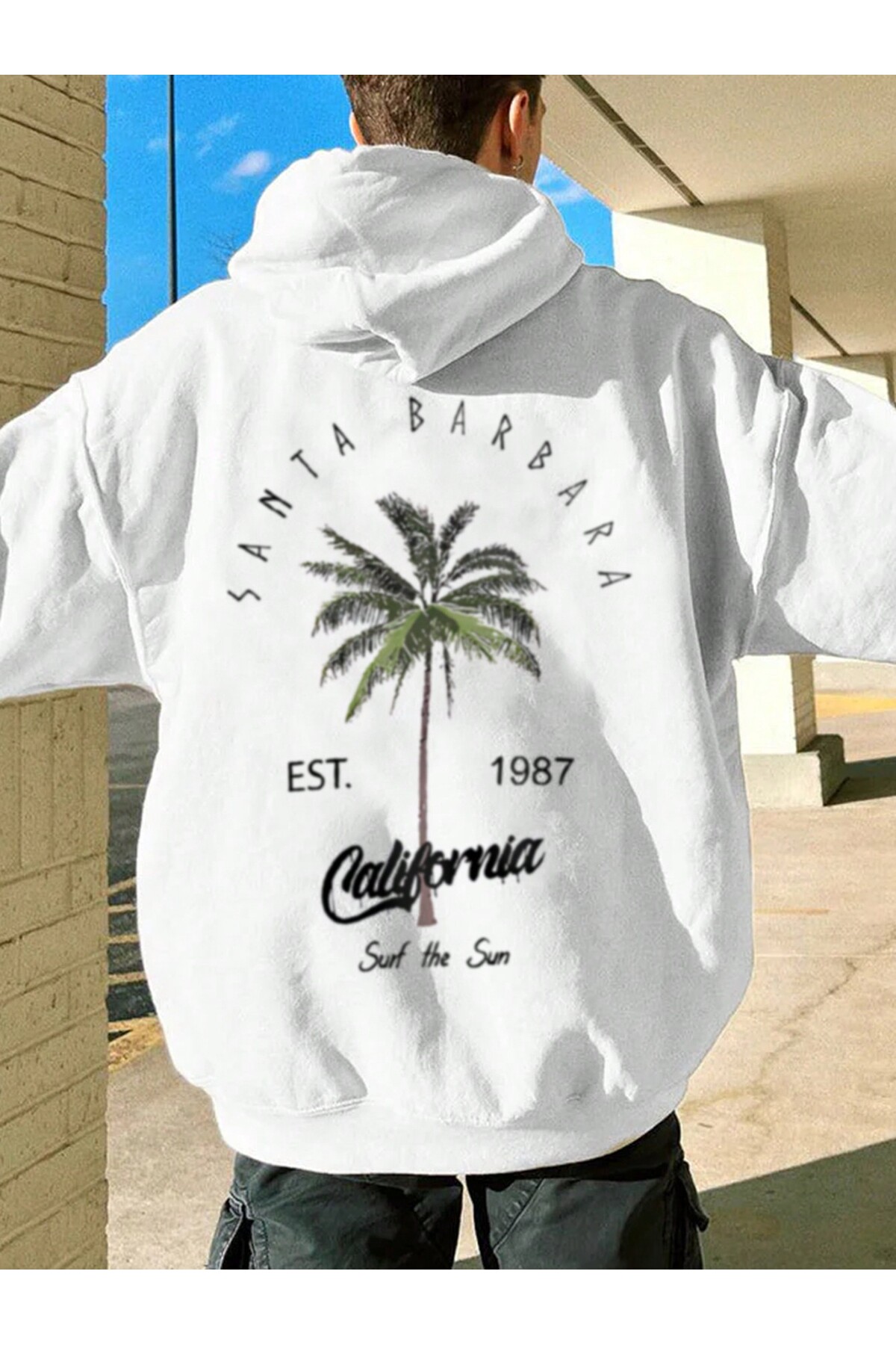 كنزة بغطاء رأس بيضاء واسعة بطبعة سانتا باربرا - هودي عالي الجودة بطباعة رقمية، قماش مريح وتصميم عصري من OBSCUR.
